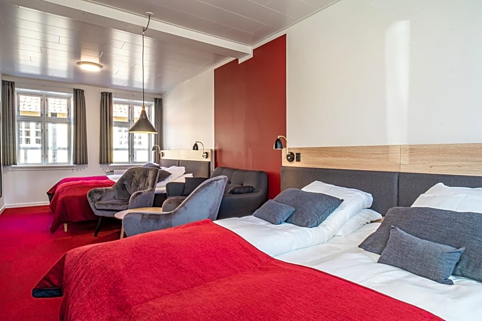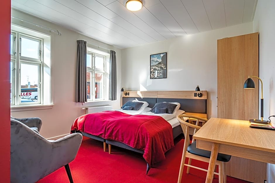 This room has a private bathroom with shower. At Hotel Allinge all rooms both in size and decor, are different